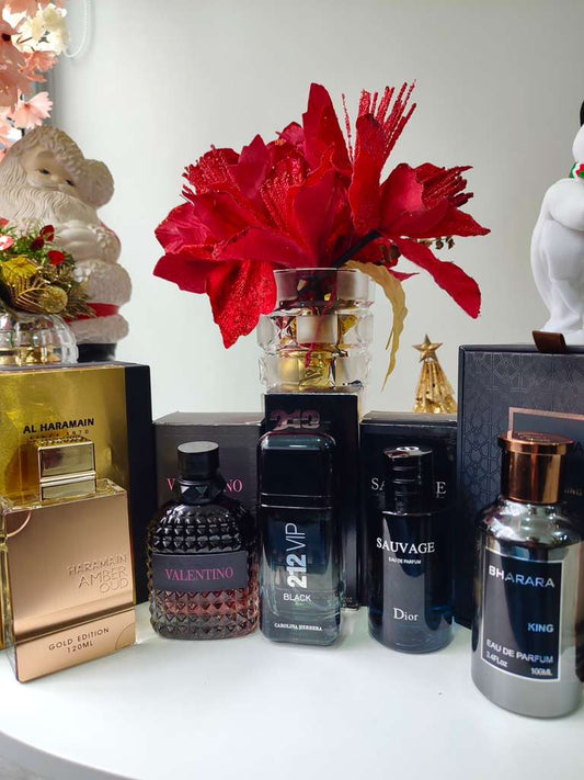 5 PERFUMES + 1 OBSEQUIO ( Alharamain + 212 VIP Black + Sauvage + Bharara King + Valentino Born in Roma int + 1 Perfumero )