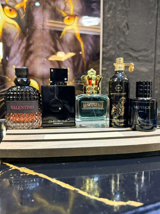 5 PERFUMES + 1 OBSEQUIO ( Valentino + Club de nuit + montale arabians tonka + sauvage elixir + Scandal + 1 Perfumero )