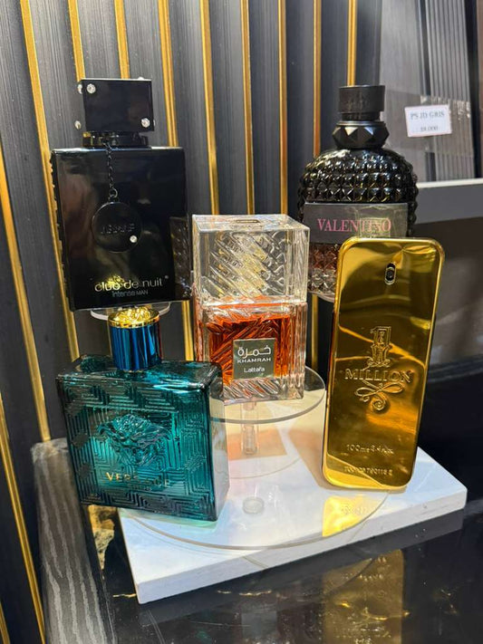 5 PERFUMES + 1 OBSEQUIO ( Khamrah + Eros Versace + One Million + Club de nuit + Valentino Born in Roma int + 1 Perfumero )