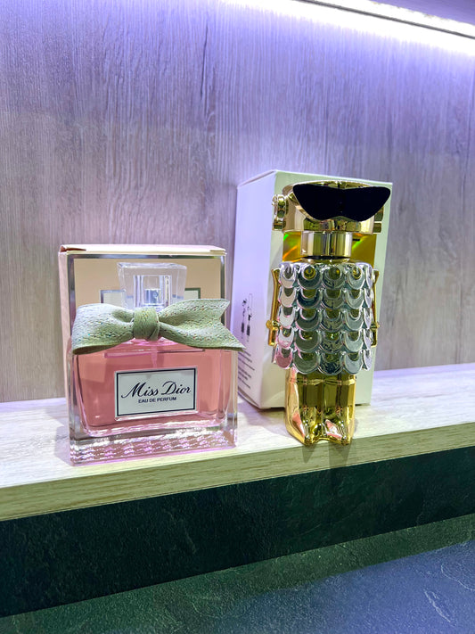DÚO PERFUMES ( Miss Dior + Fame Paco Rabbane ) + Regalo Perfumero 🎁