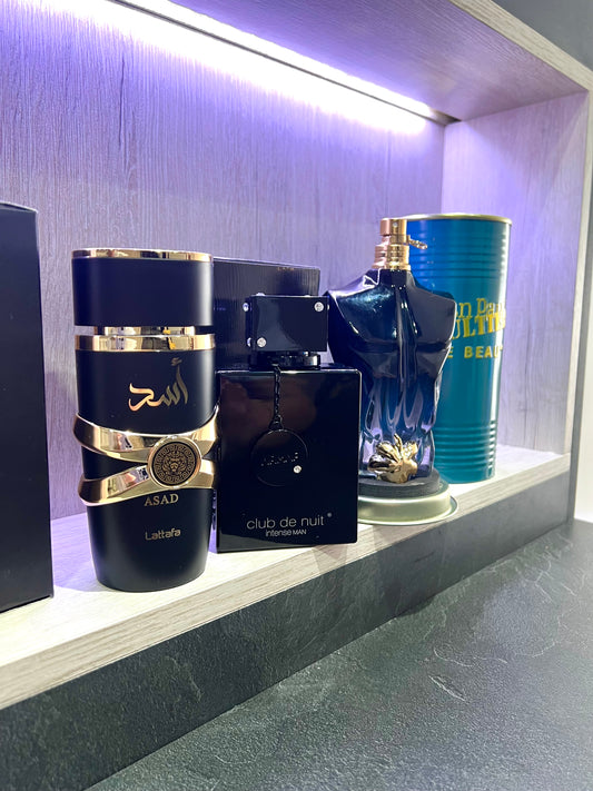 TRÍO PERFUMES ( Asad Lataffa + JPG Le Beau + Club de Nuit ) + Regalo Perfumero 🎁