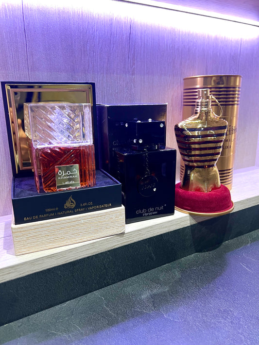 TRÍO PERFUMES ( JPG Elixir + Club de Nuit + Khamrah ) + Regalo Perfumero 🎁