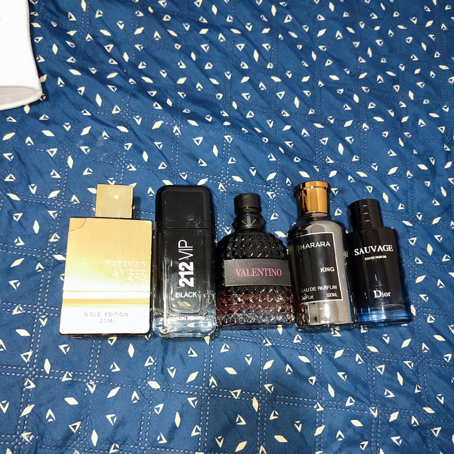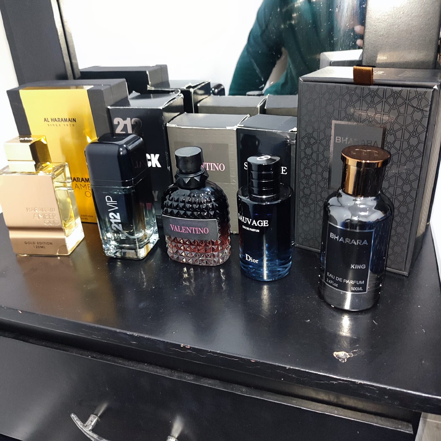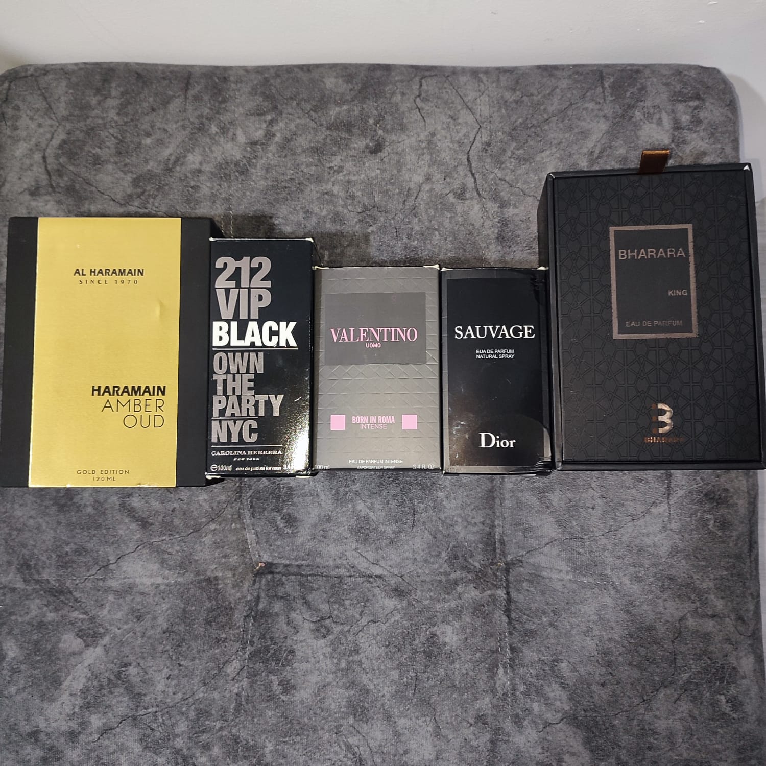 5 PERFUMES + 1 OBSEQUIO ( Alharamain + 212 VIP Black + Sauvage + Bharara King + Valentino Born in Roma int + 1 Perfumero )