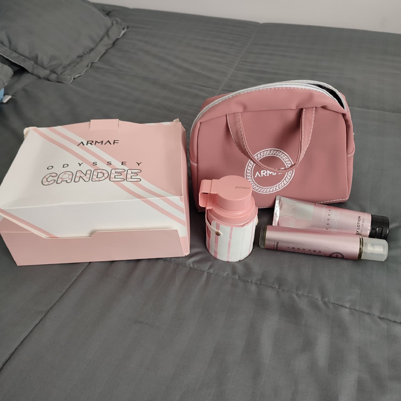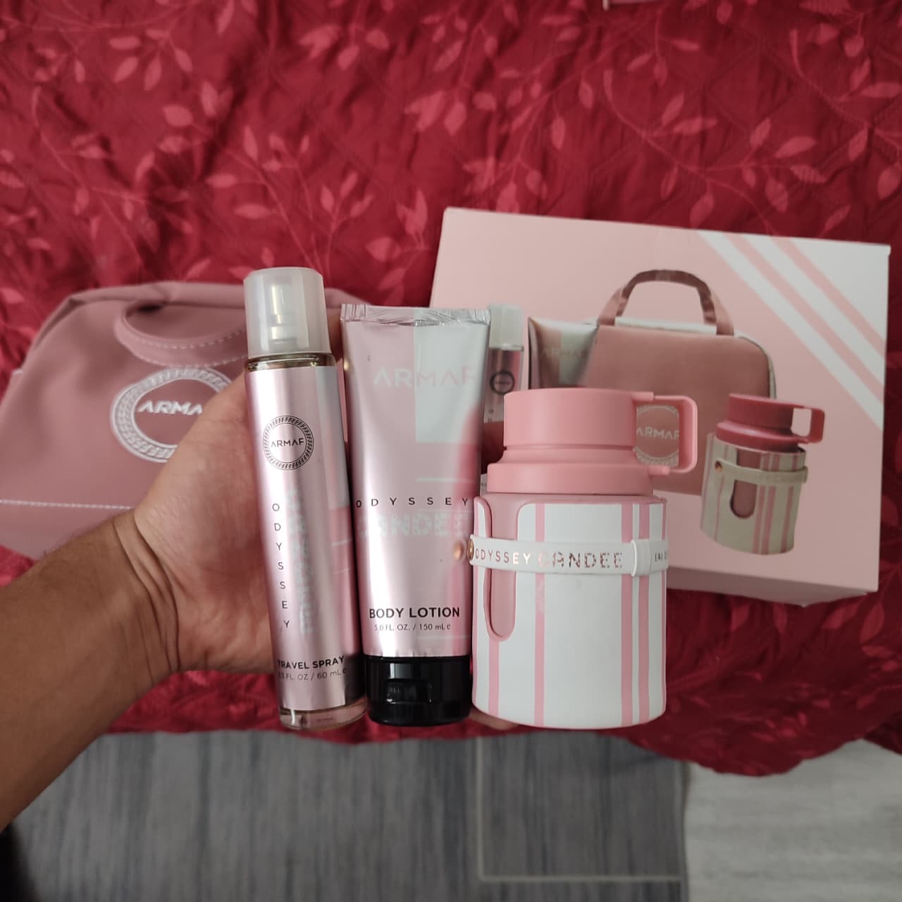 Set Odyssey Candee (Perfume + Crema corporal + Splash + Bolso + empaque lujo)