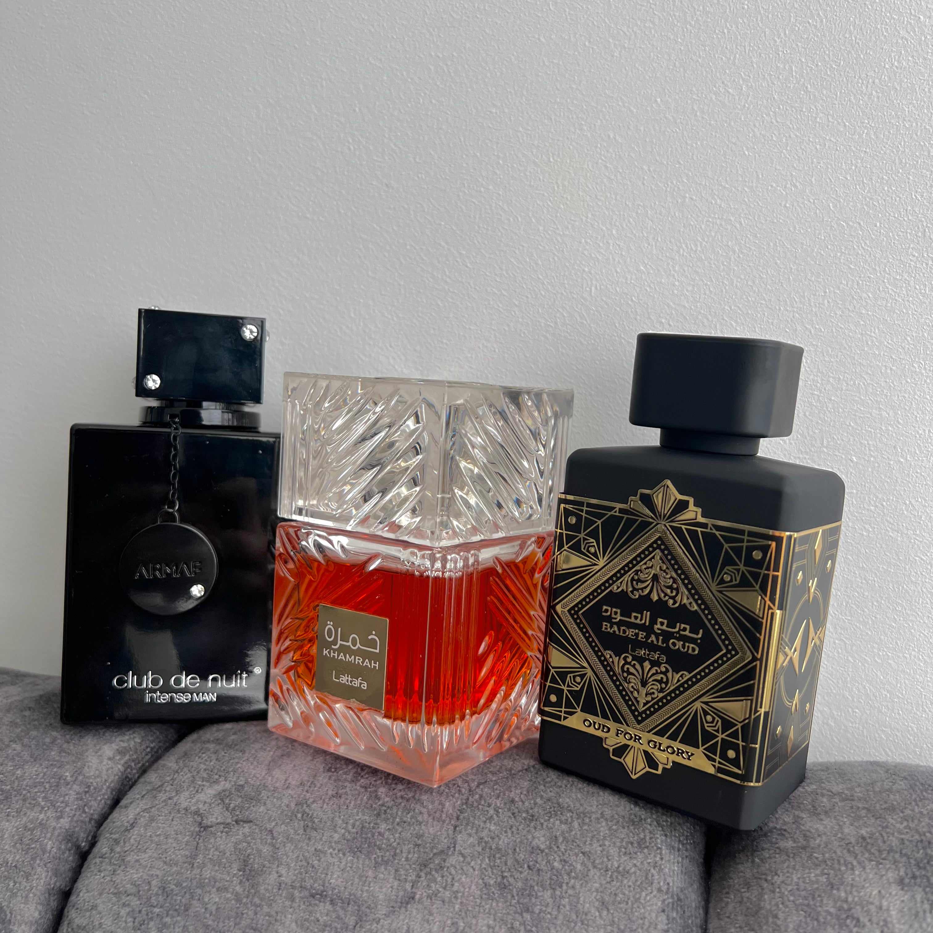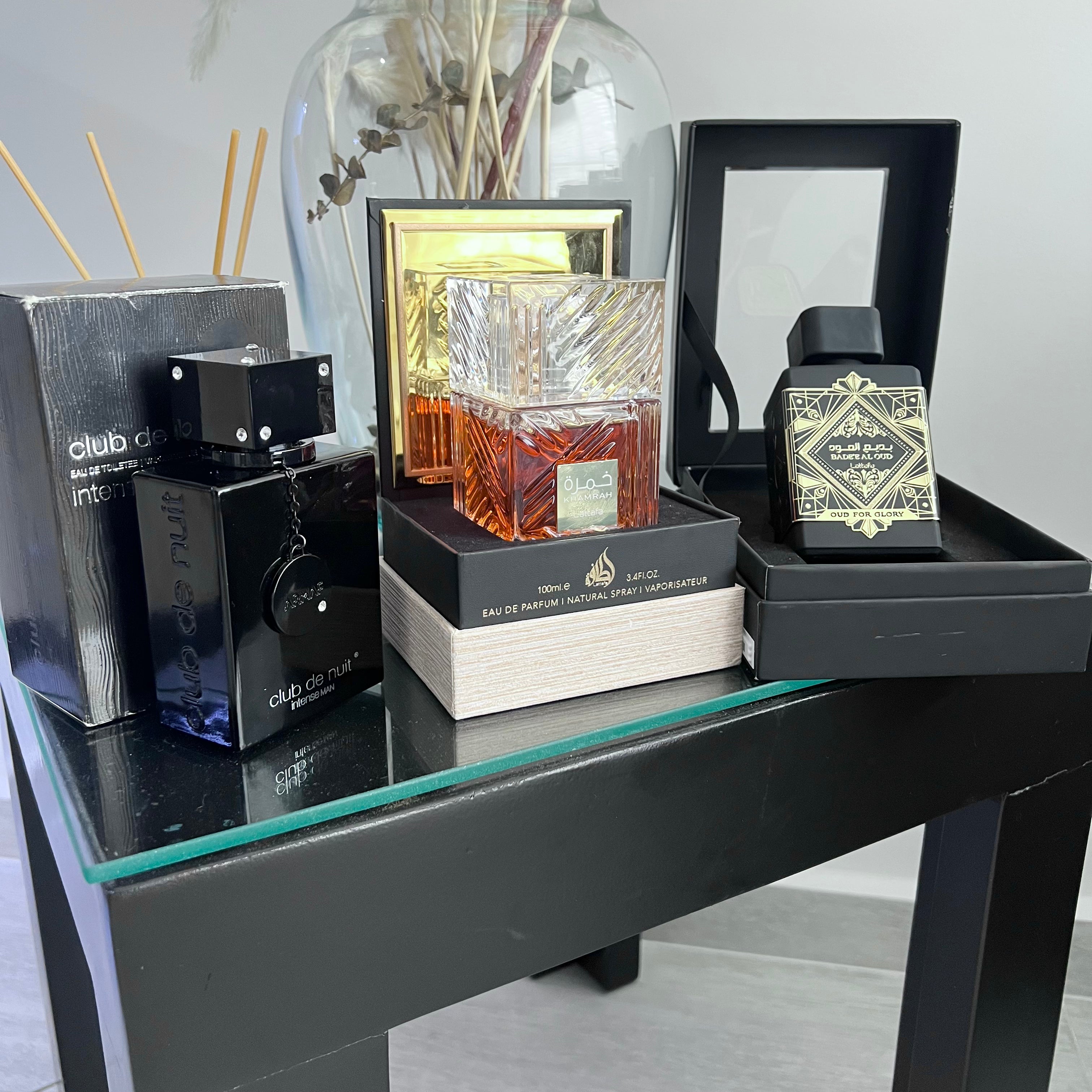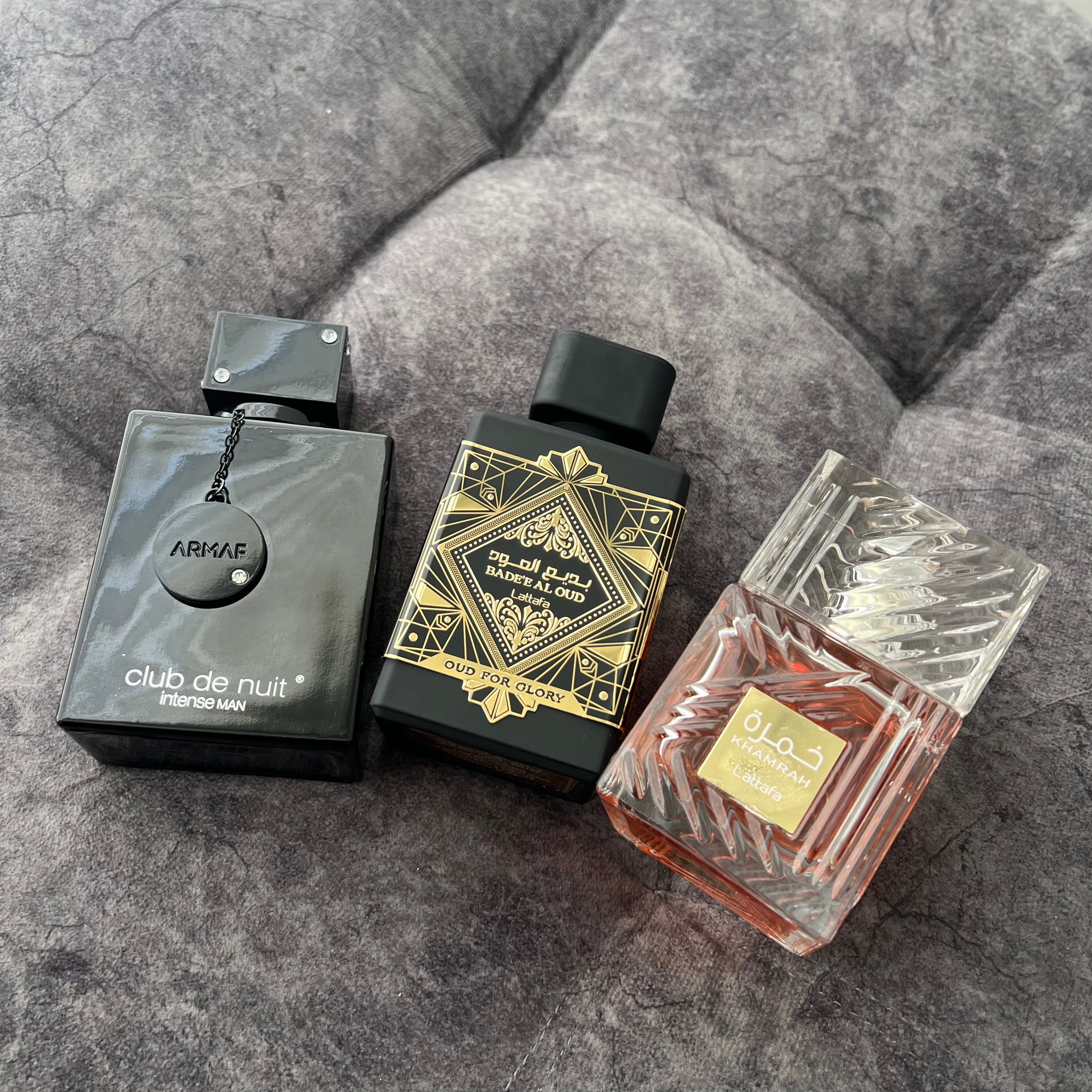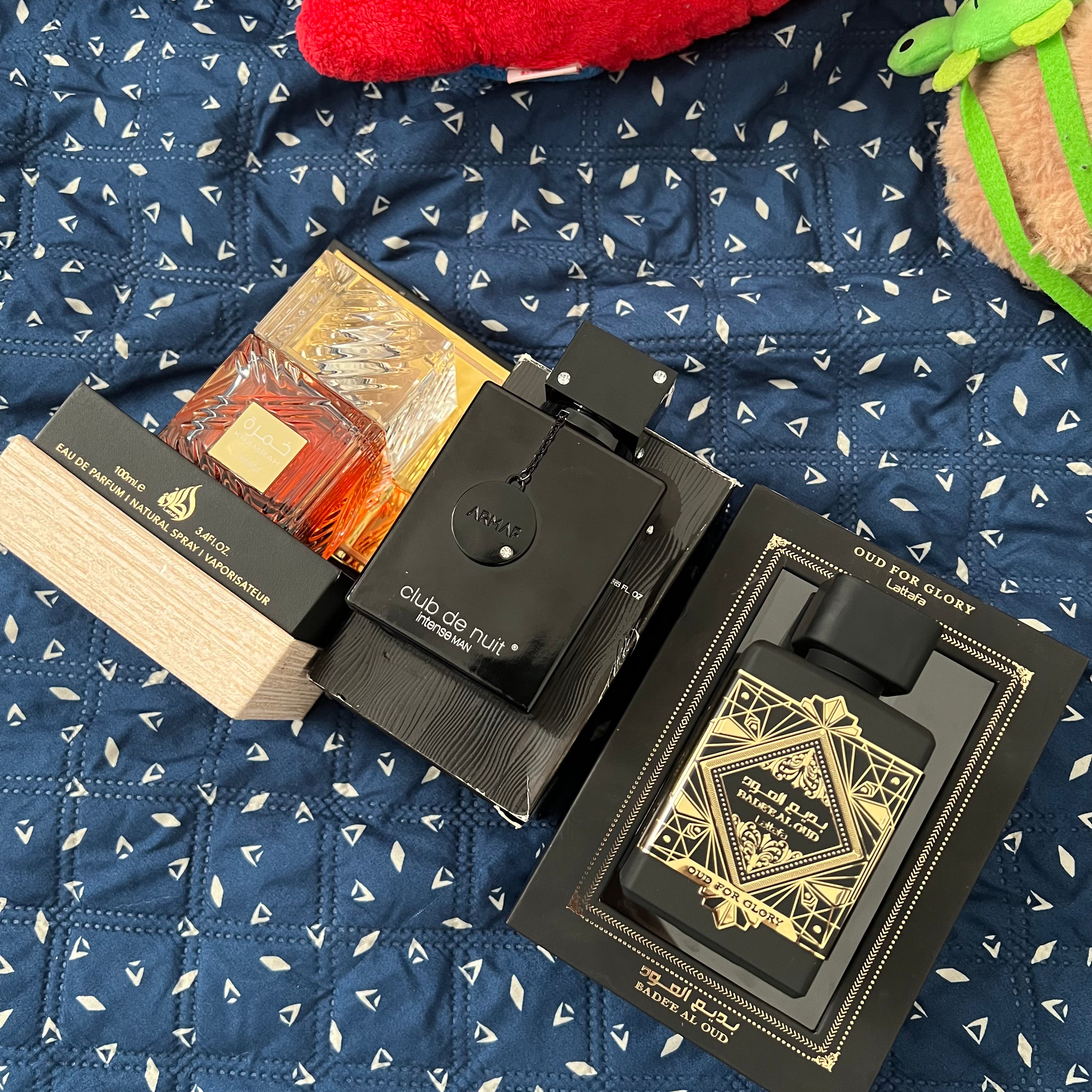 TRIO PERFUMES ( Oud For Glory + Khamrah + Club de nuit ) + Regalo Perfumero